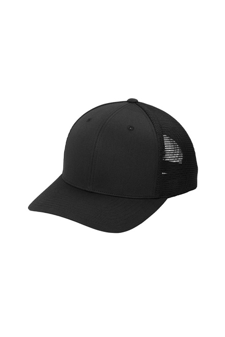 60/40 cotton/polyester front panels; 55/43/2 polyester/rayon/spandex front panels (Heathers); 100% polyester mesh mid and back panels Structured Mid-profile Permacurv ® bill to maintain proper shape and curve Silver undervisor 8-