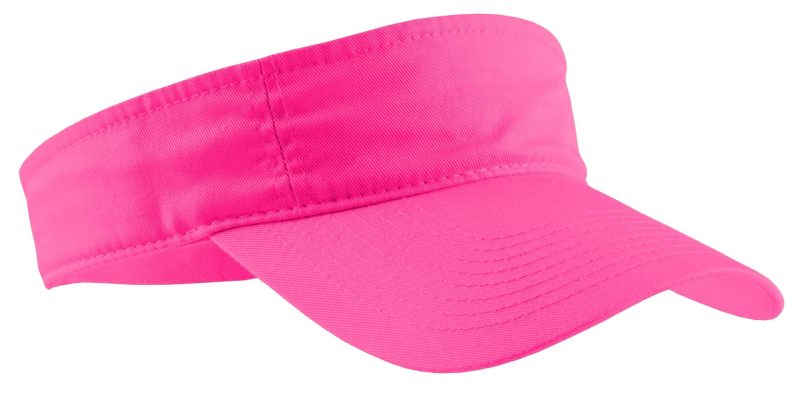 This budget-friendly 3-panel visor has a self-fabric sweatband that folds down for easy decoration access. | Fabric: 100% cotton twill; 80/20 poly/cotton (Neons) Closure: Hook and loop