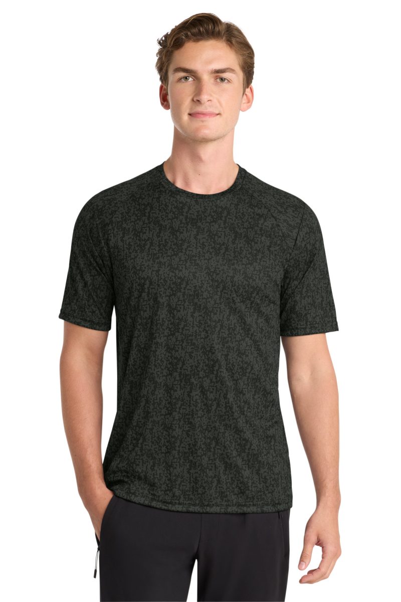 A subtle digi camo pattern gives this moisture-wicking, breathable performance tee a unique edge. 3.8-ounce, 100% polyester interlock with sublimated digi camo print Removable tag for comfort and relabeling